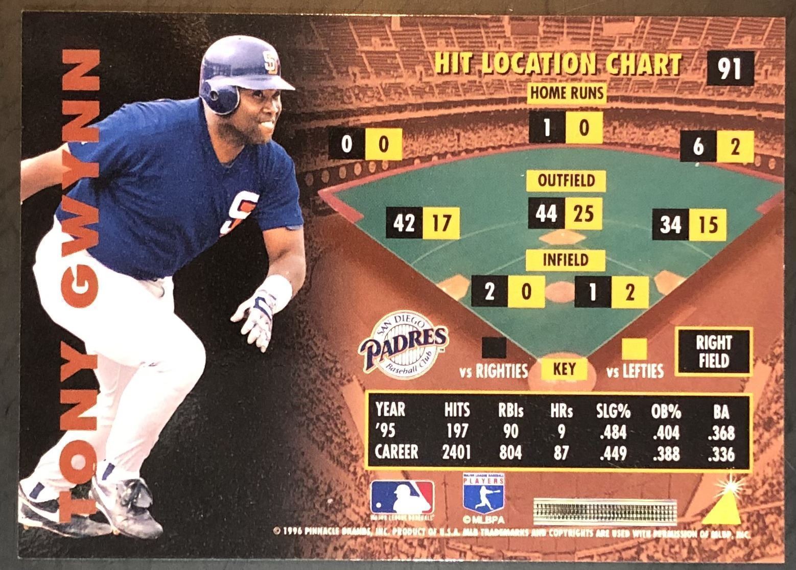 Lot 323 1996 PINNACLE ZENITH TONY GWYNN (HOF)