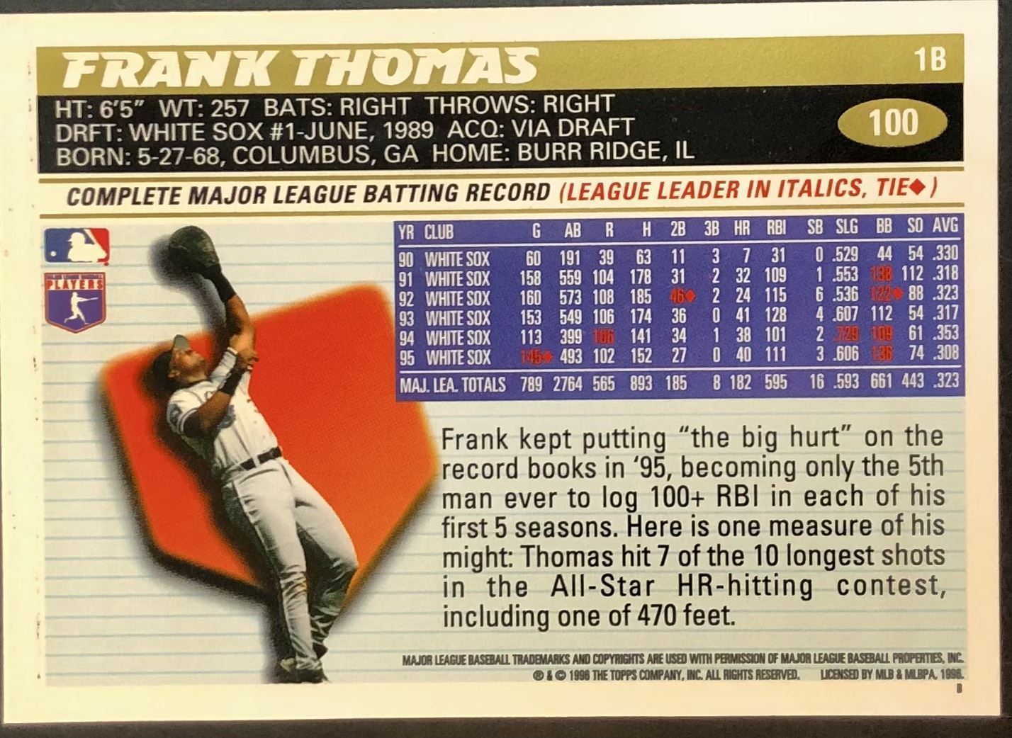 Lot 334 1996 TOPPS MLB FRANK THOMAS (HOF)
