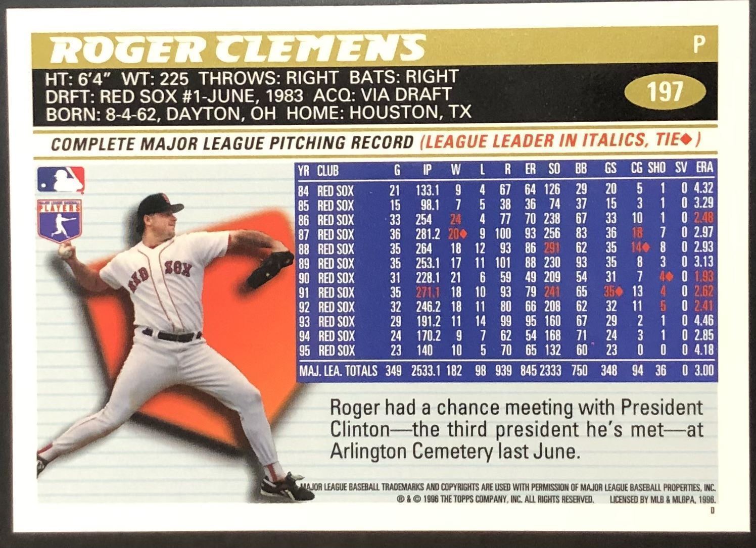 Lot 335 1996 TOPPS ROGER CLEMENS