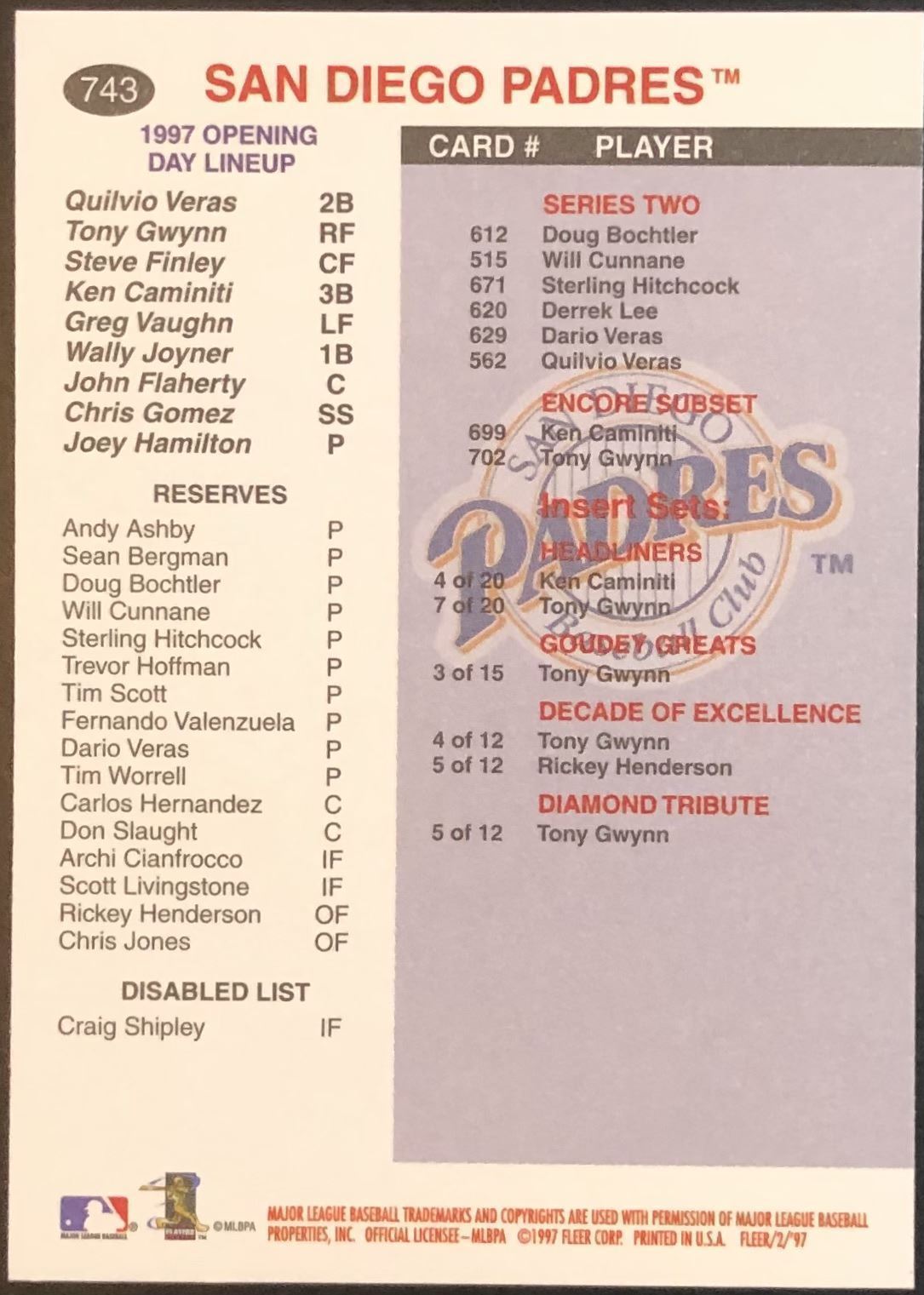 Lot 345 1997 FLEER TONY GWYNN (HOF)