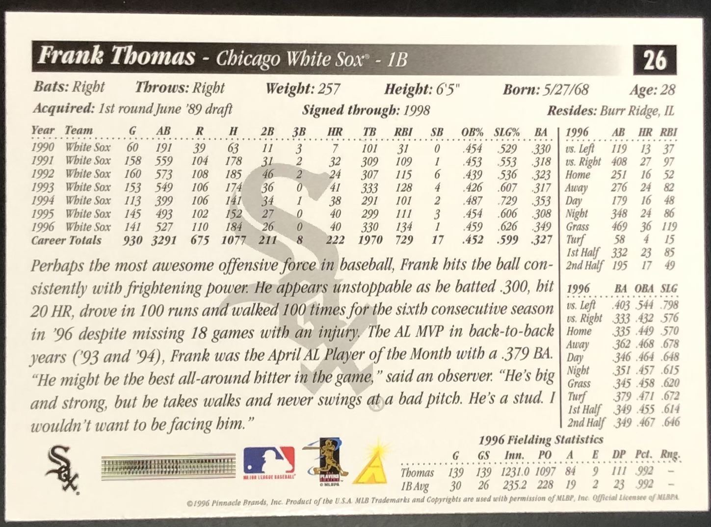 Lot 348 1997 SCORE FRANK THOMAS (HOF)