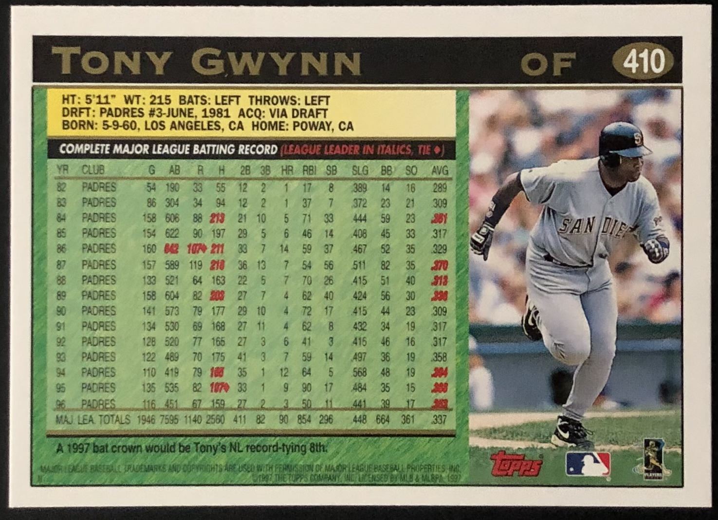 Lot 353 1997 TOPPS TONY GWYNN (HOF)
