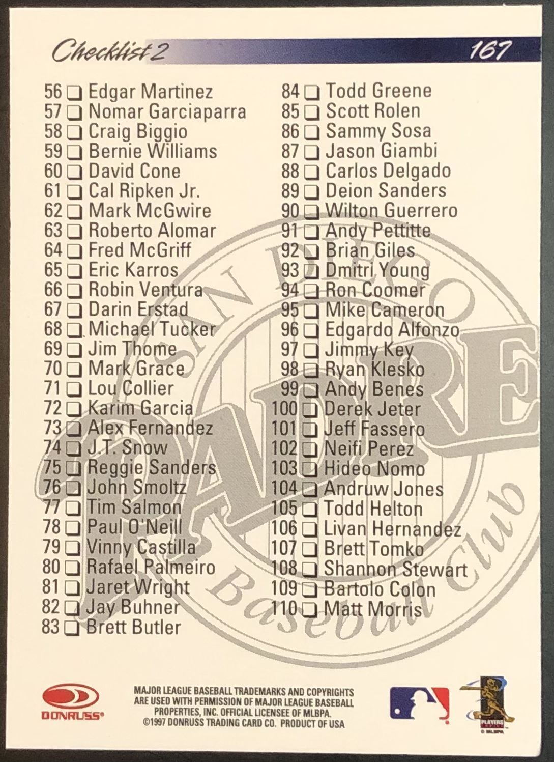 Card #167 MLB, baseball, hall of fame