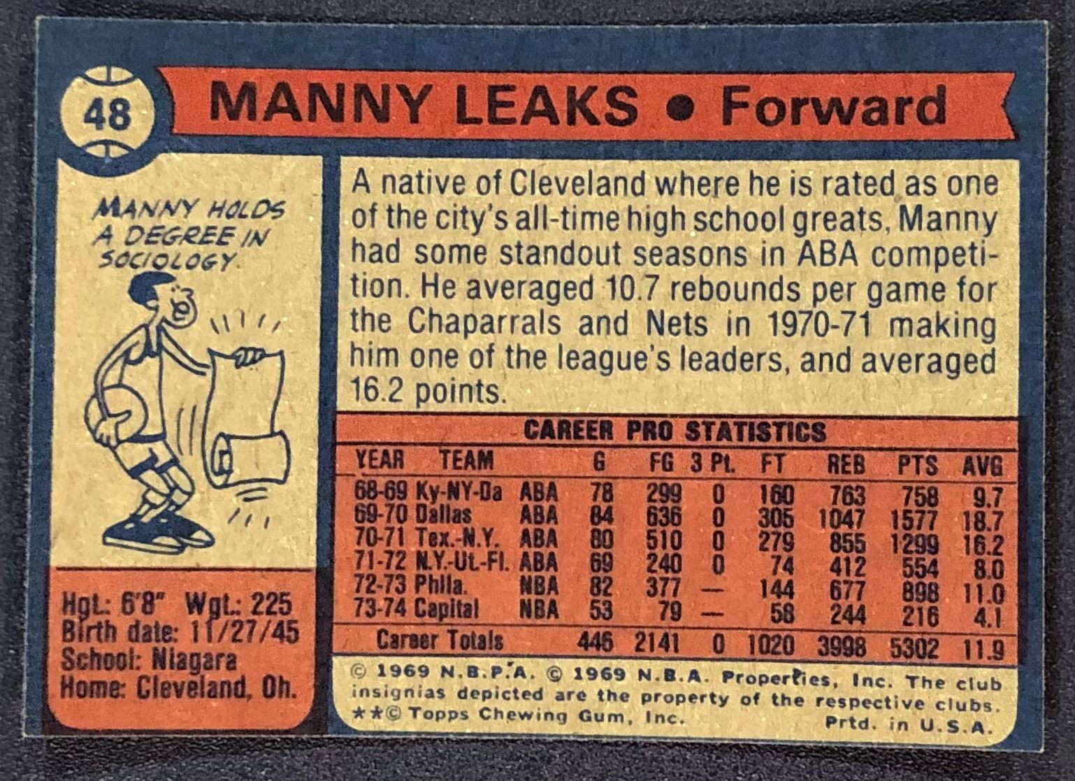 Lot 367 1974-75 TOPPS NBA MANNY LEAKS