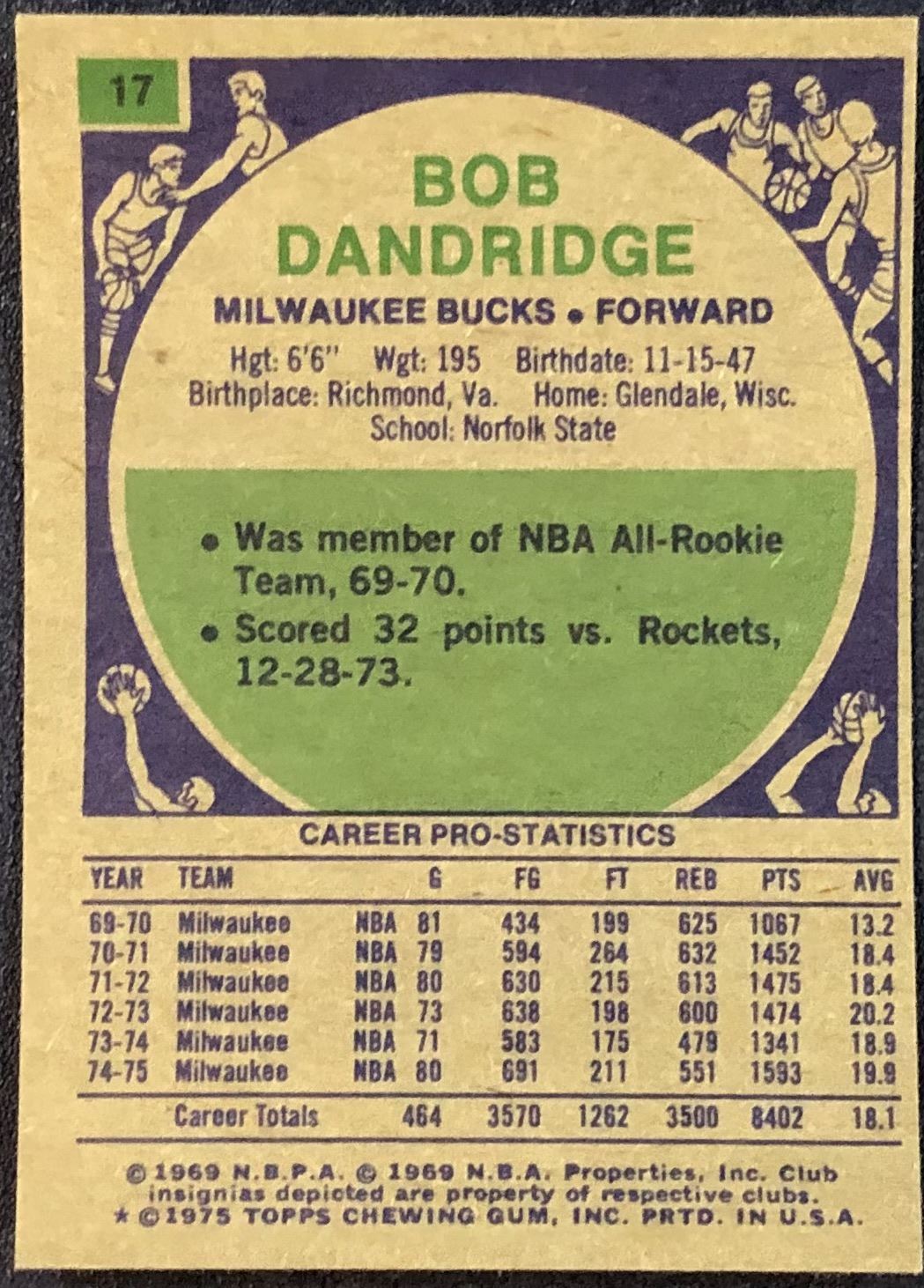 Lot 369 1975-76 TOPPS BOB DANDRIDGE (HOF)