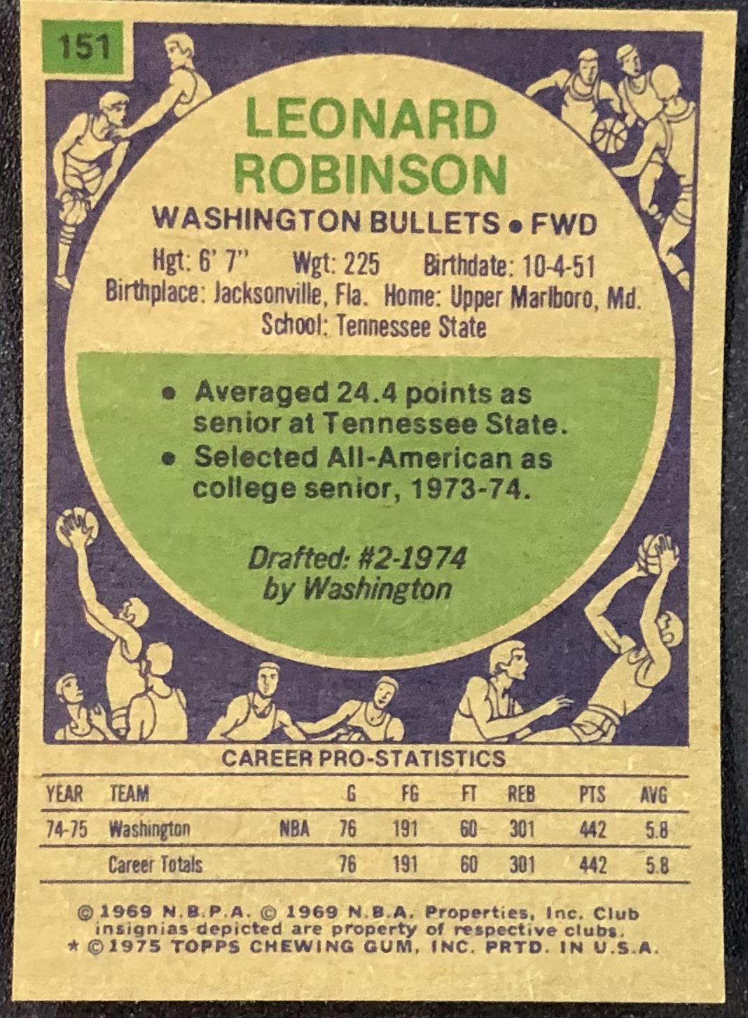 Lot 382 1975-76 TOPPS LEONARD ROBINSON ROOKIE CARD