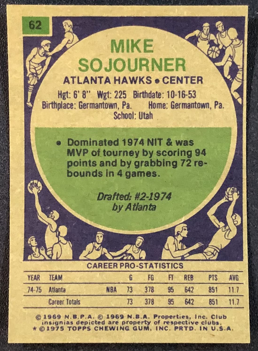 Lot 383 1975-76 TOPPS MIKE SOJOURNER ROOKIE CARD