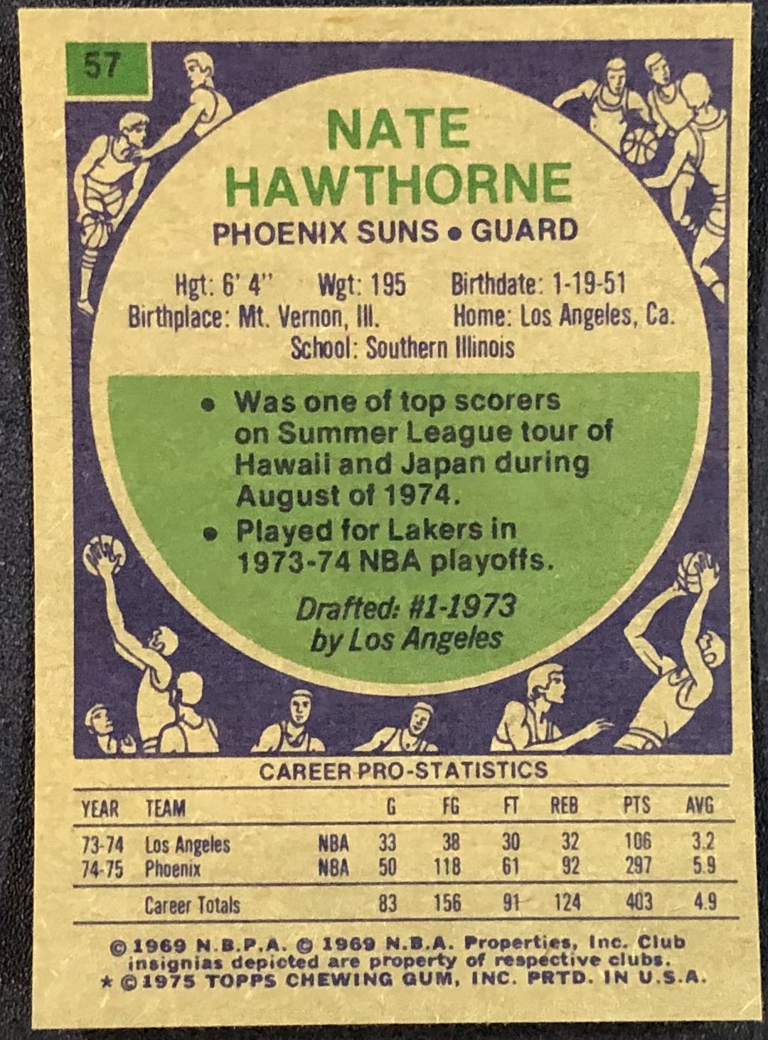 Lot 384 1975-76 TOPPS NATE HAWTHORNE ROOKIE CARD