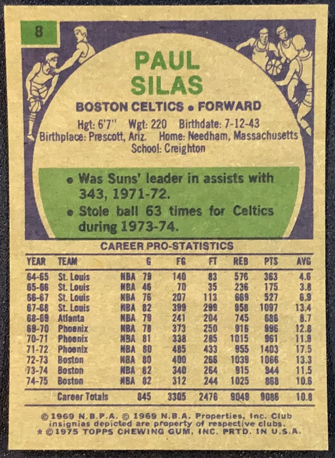 Lot 390 1975-76 TOPPS PAUL SILAS