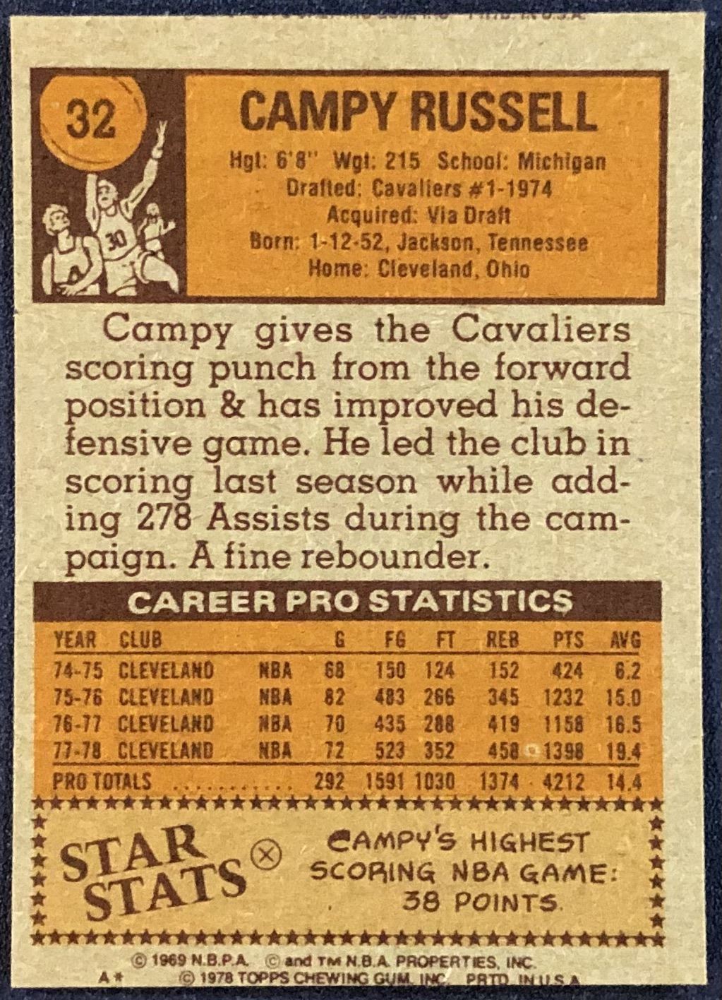 Lot 396 1978-79 TOPPS CAMPY RUSSELL