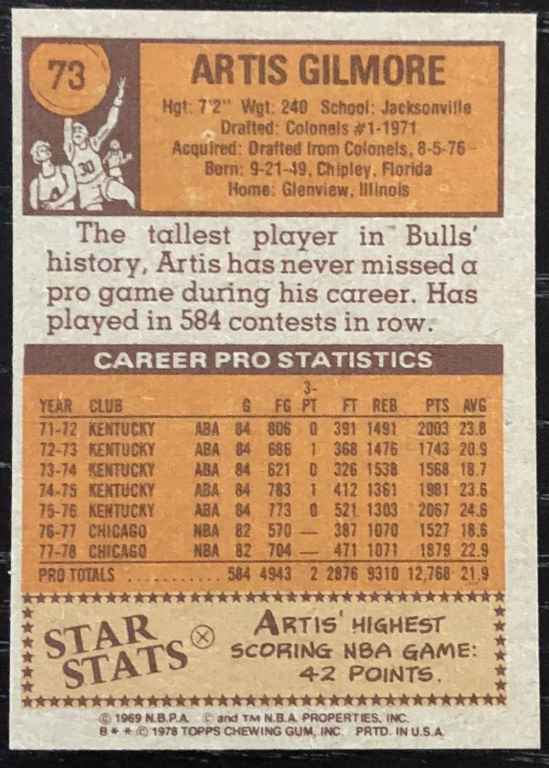 Lot 402 1978-79 TOPPS NBA ARTIS GILMORE (HOF)