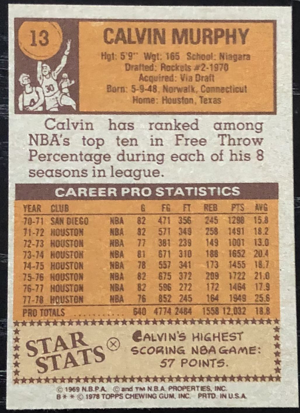 Lot 405 1978-79 TOPPS NBA CALVIN MURPHY (HOF)
