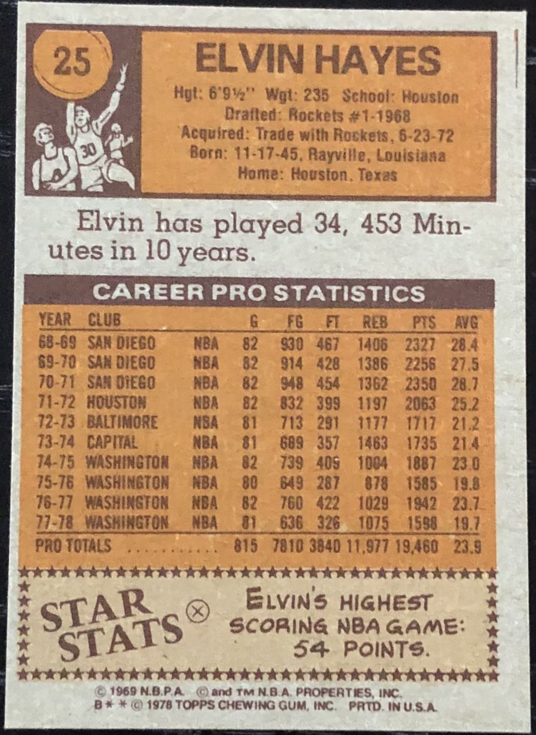 Lot 406 1978-79 TOPPS NBA ELVIN HAYES (HOF)