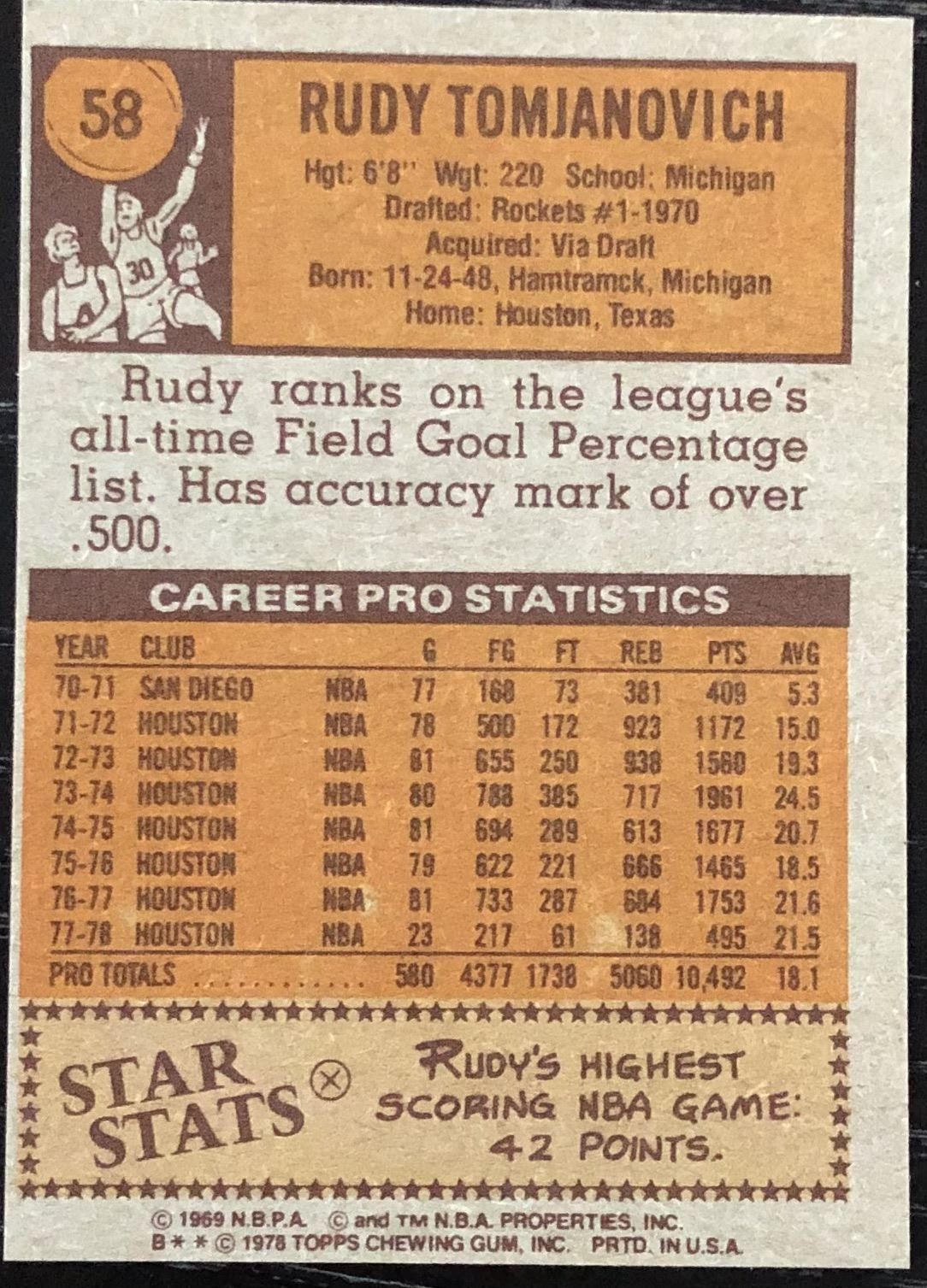 Lot 411 1978-79 TOPPS NBA RUDY TOMJANOVICH (HOF)