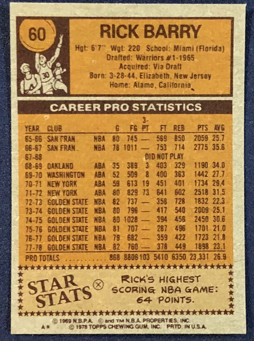 Lot 414 1978-79 TOPPS RICK BARRY (HOF)