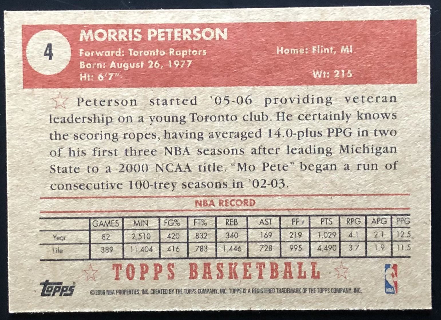 Lot 425 2005-06 TOPPS 1952 STYLE MORRIS PETERSON