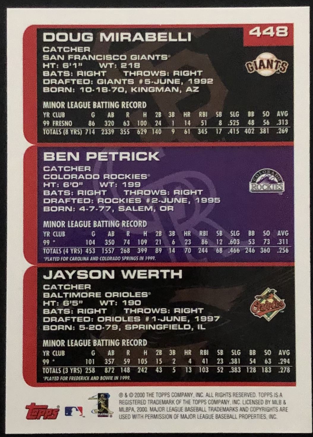 Card #448 baseball, MLB, rookie
