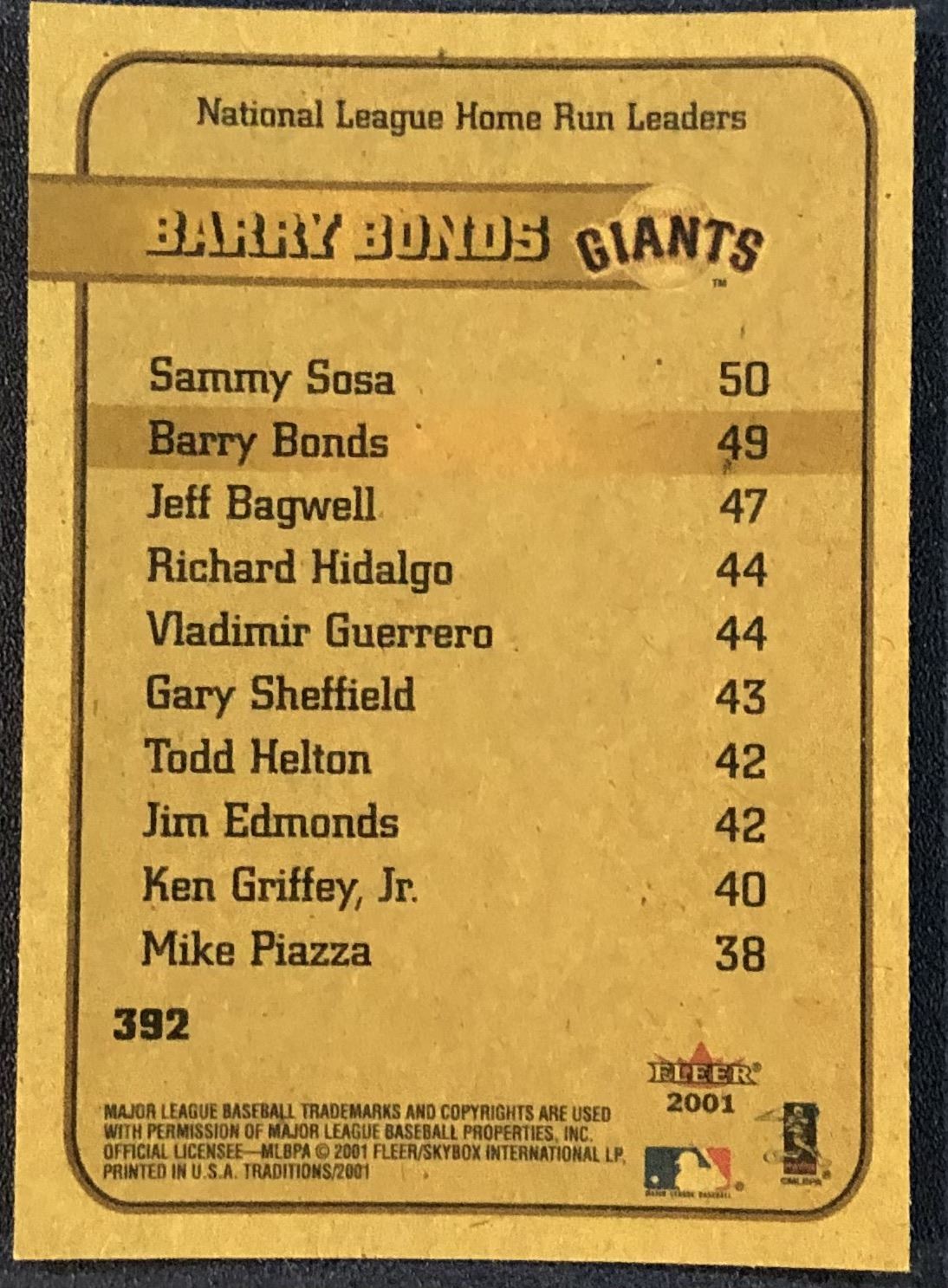 Lot 437 2001 FLEER BARRY BONDS