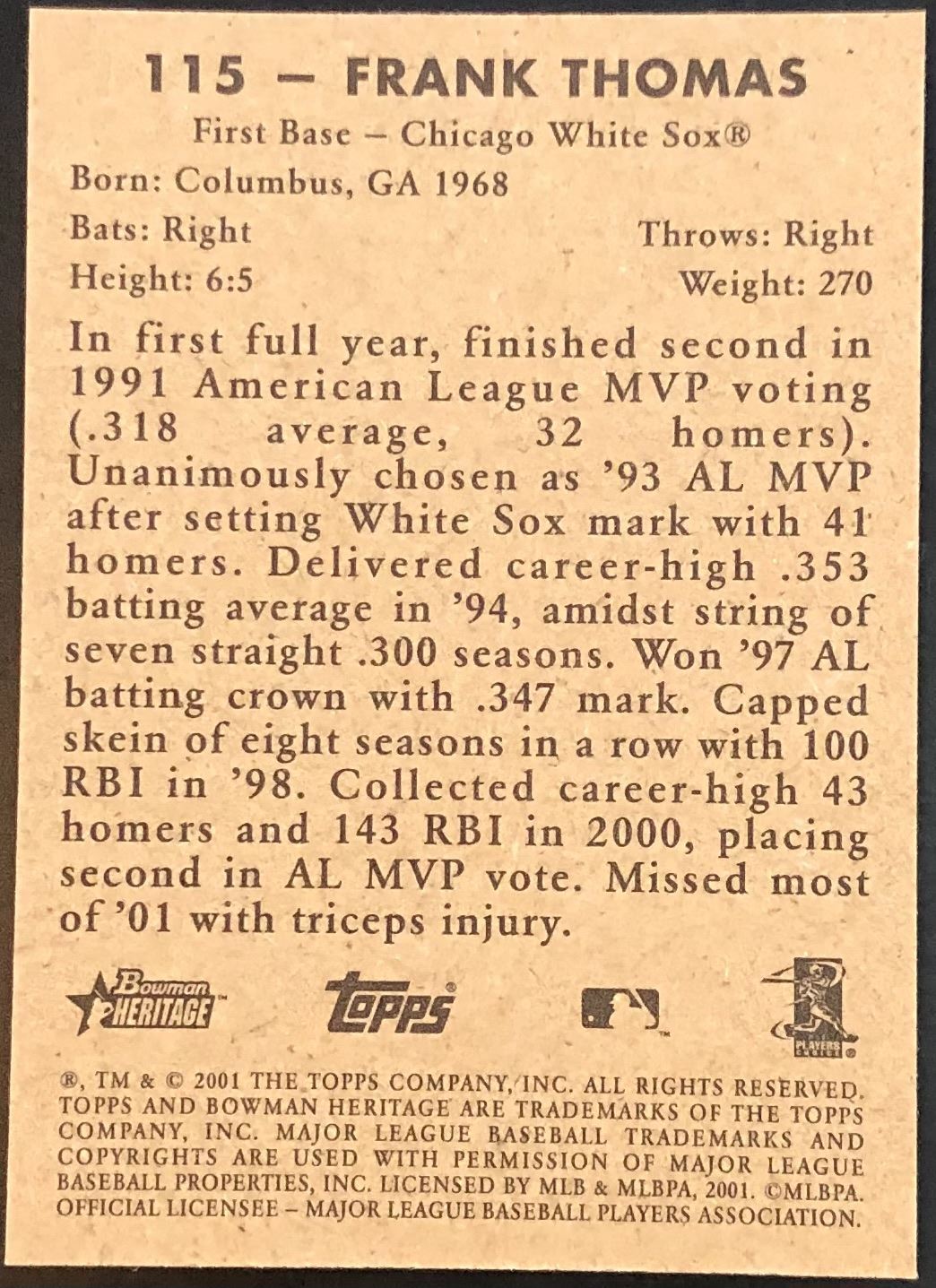 Lot 448 2001 TOPPS HERITAGE FRANK THOMAS (HOF)