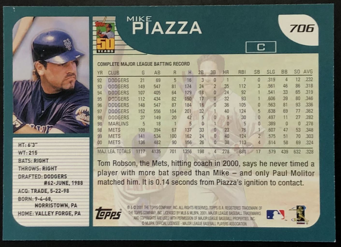 Lot 451 2001 TOPPS MIKE PIAZZA (HOF)