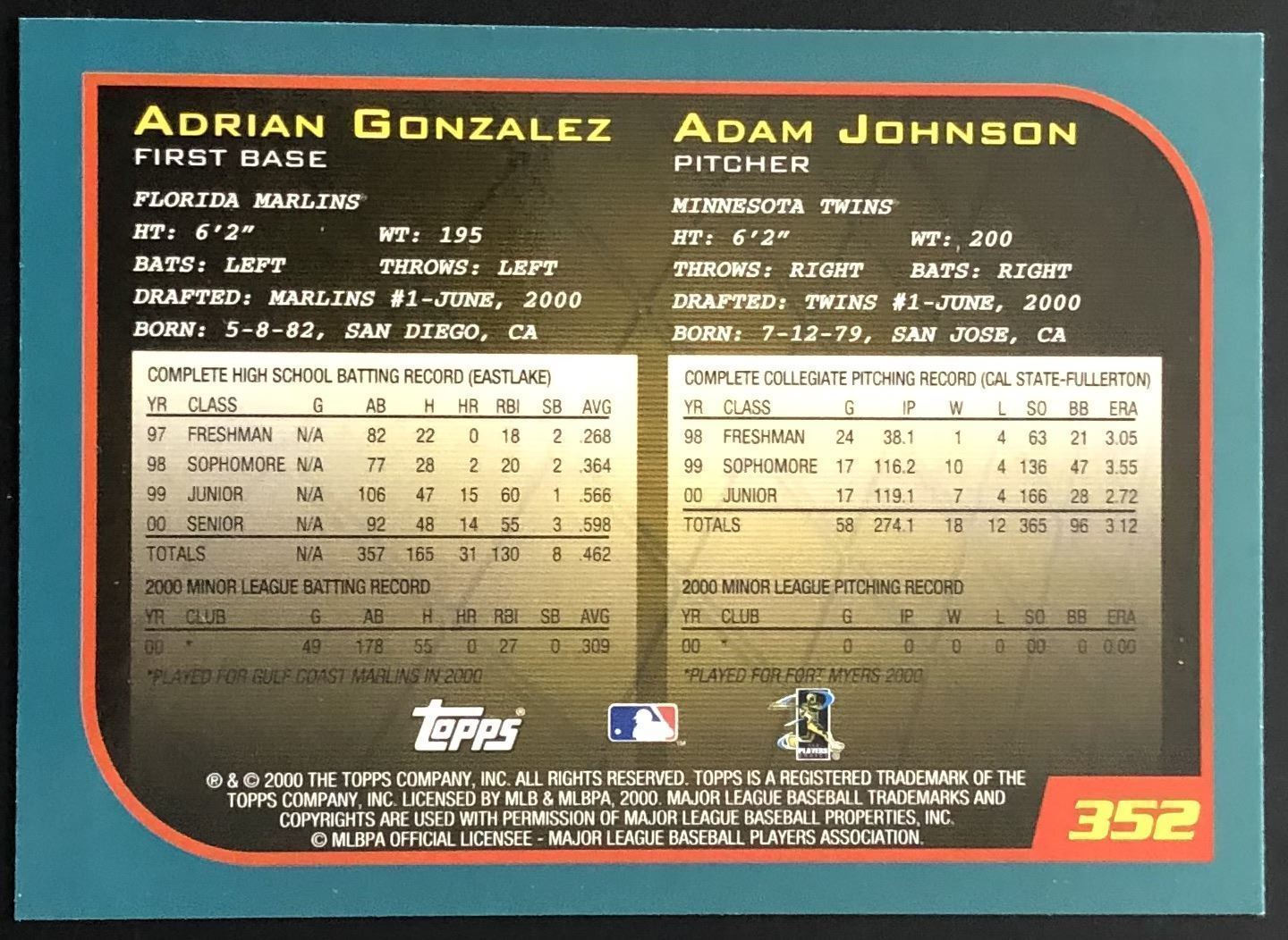 Lot 452 2001 TOPPS MLB ADRIAN GONZALEZ ROOKIE CARD
