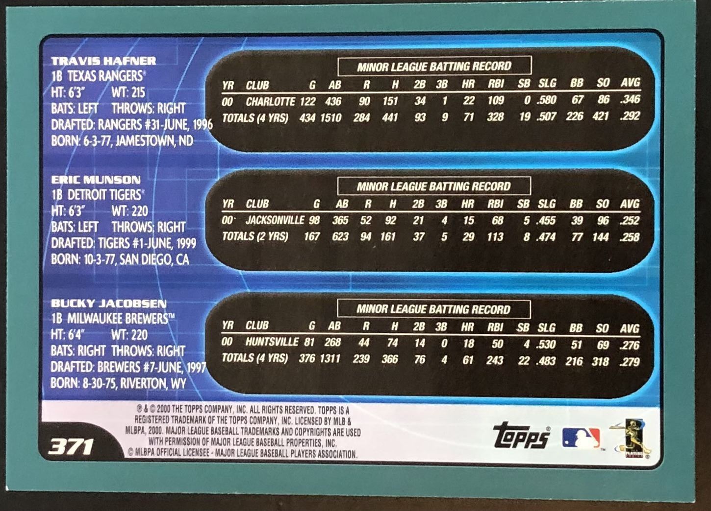 Card #371 MLB, baseball, rookie