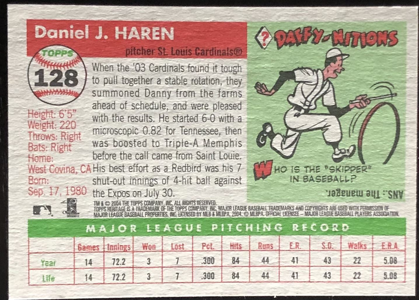 Lot 492 2005 TOPPS HERITAGE DAN HAREN ROOKIE CARD