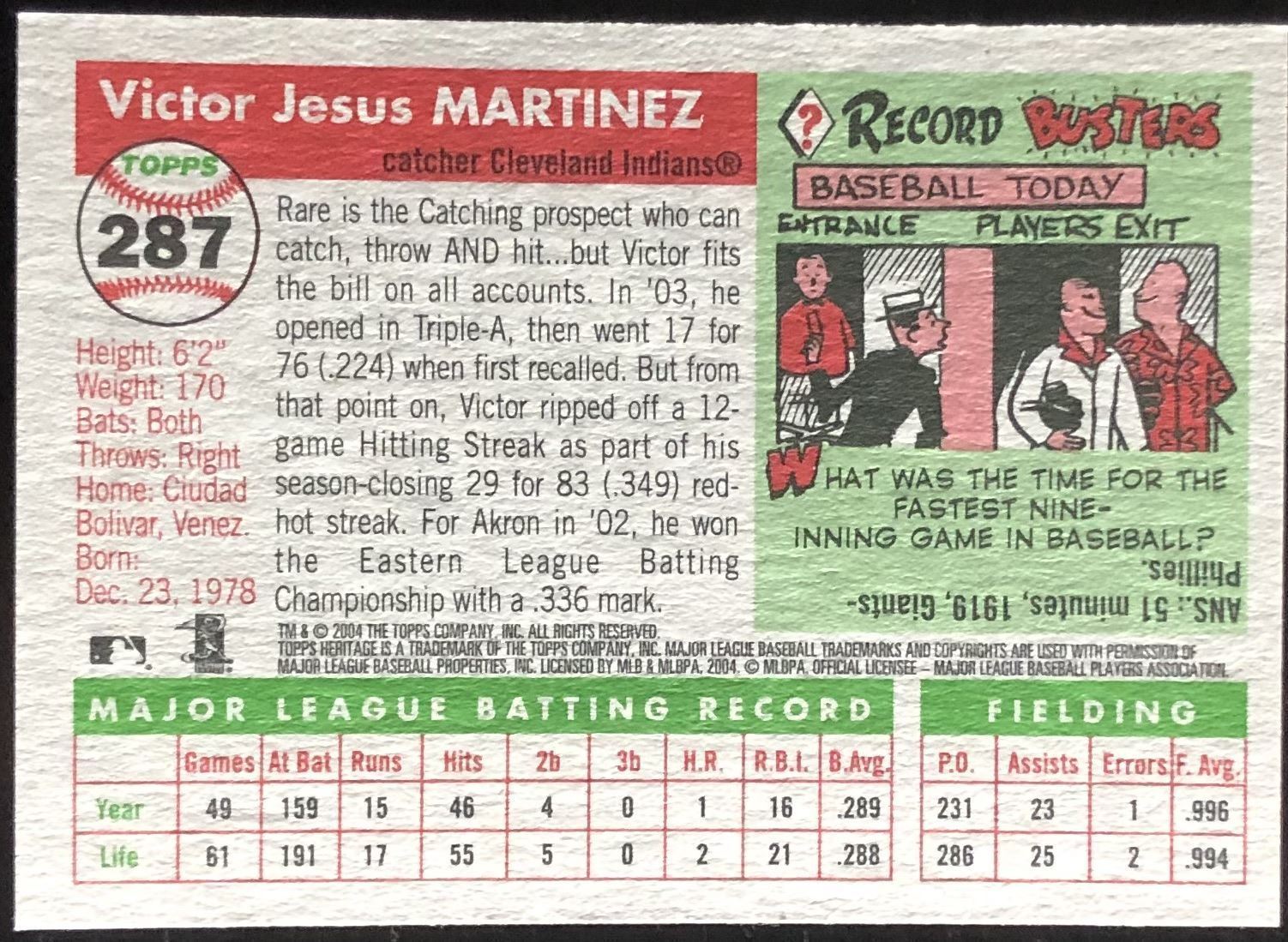 Lot 499 2005 TOPPS HERITAGE VICTOR MARTINEZ ROOKIE CARD
