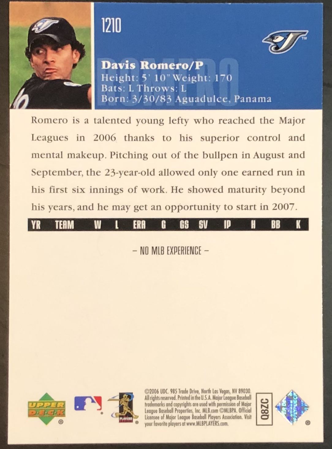 Lot 501 2006 UPPER DECK DAVIS ROMERO ROOKIE CARD