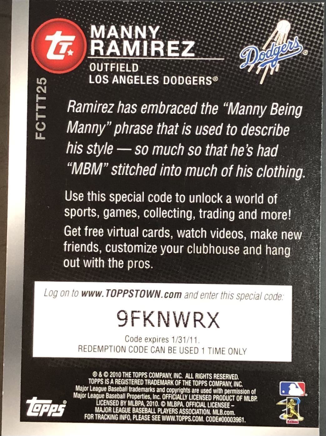 Lot 510 2010 TOPPS MANNY RAMIREZ (HOF)