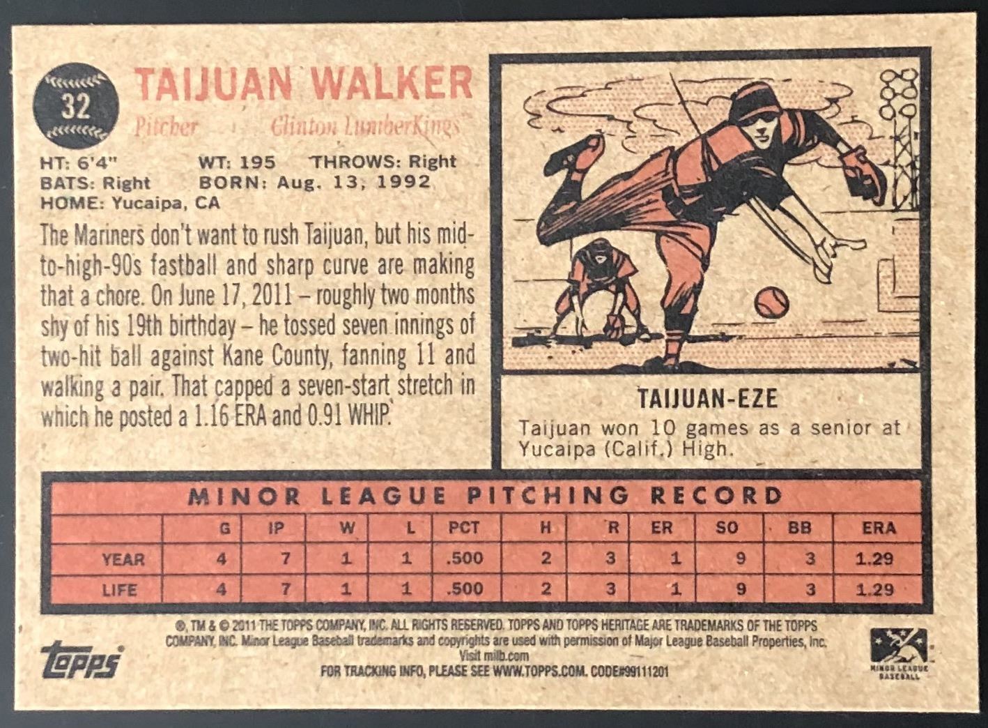 Lot 513 2011 TOPPS TAIJUAN WALKER ROOKIE CARD