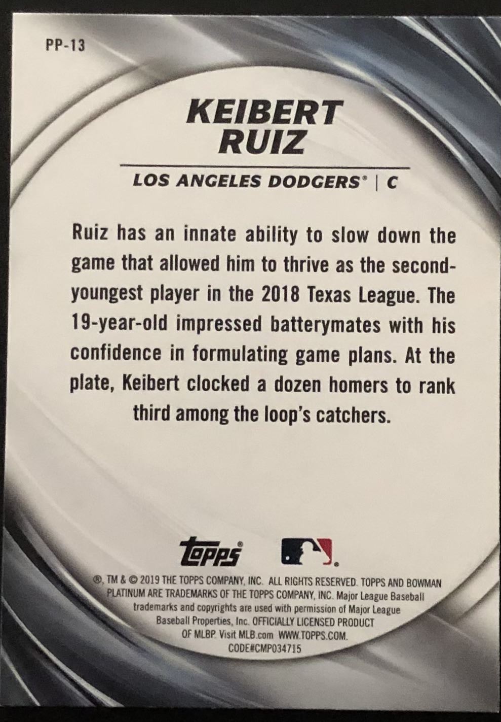 Lot 516 2019 BOWMAN PLATINUM KEIBERT RUIZ ROOKIE CARD