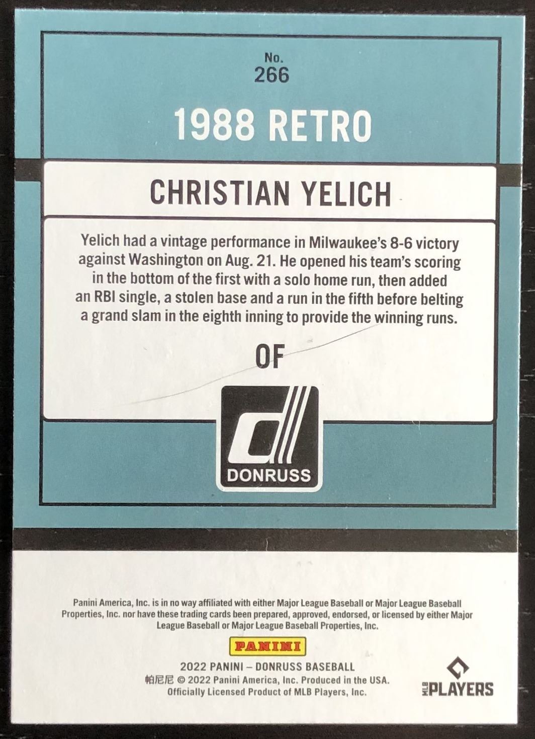 Lot 523 2022 DONRUSS '88 RETRO CHRISTIAN YELICH