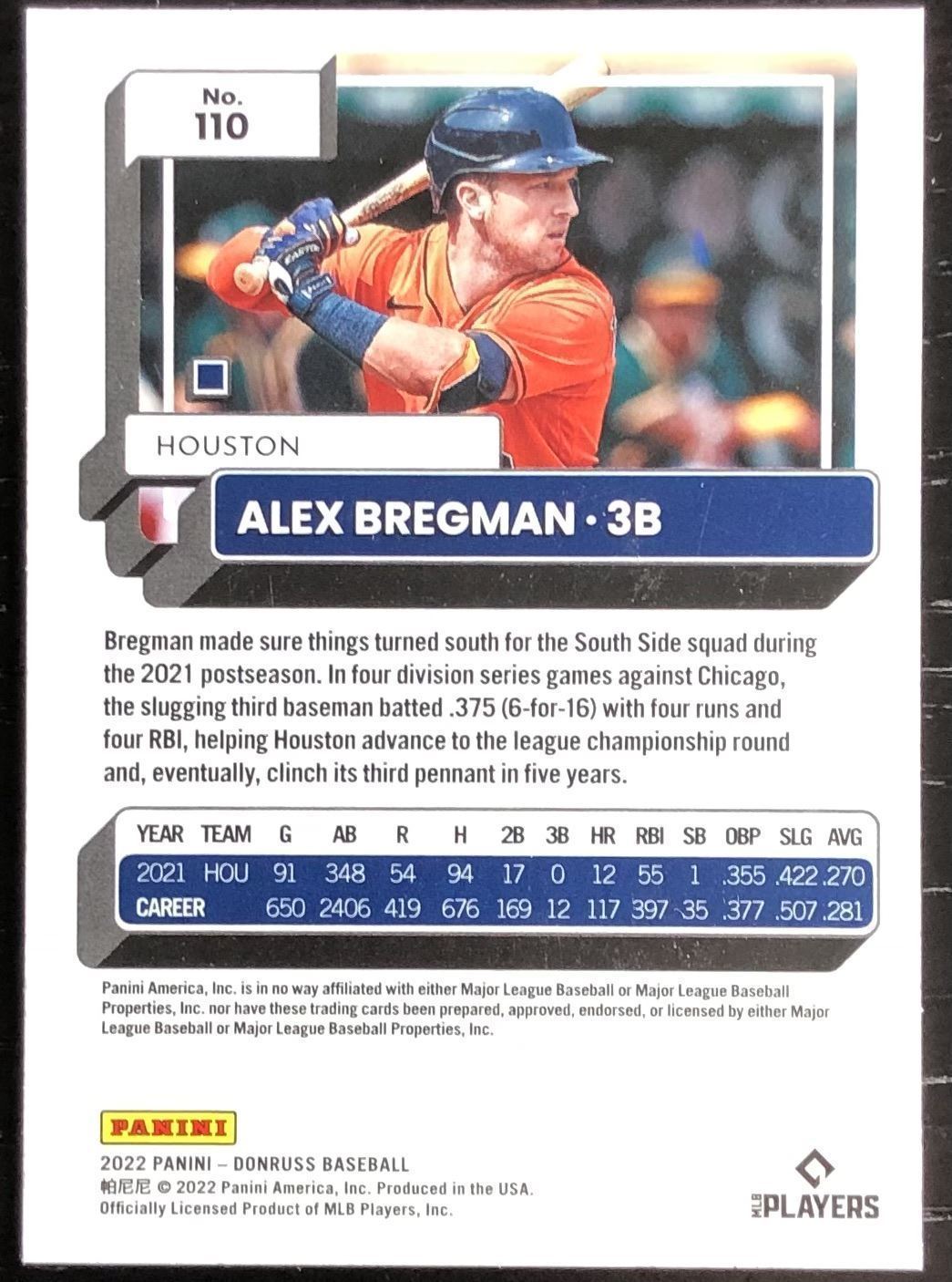 Lot 524 2022 DONRUSS ALEX BREGMAN