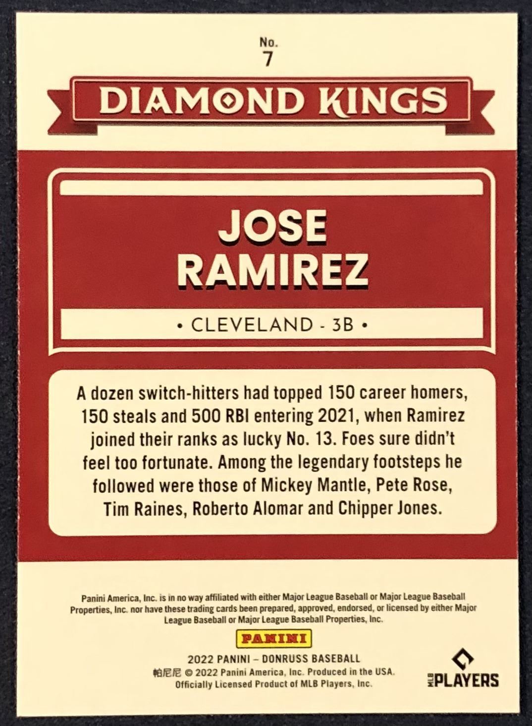 Lot 525 2022 DONRUSS DIAMOND KINGS JOSE RAMIREZ