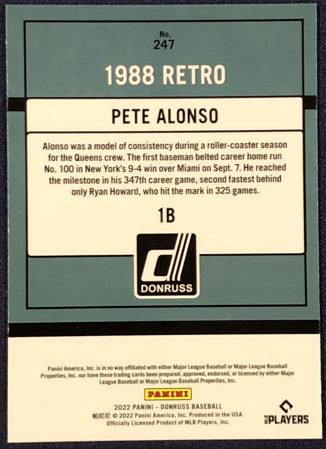 Lot 531 2022 DONRUSS RETRO PETE ALONSO