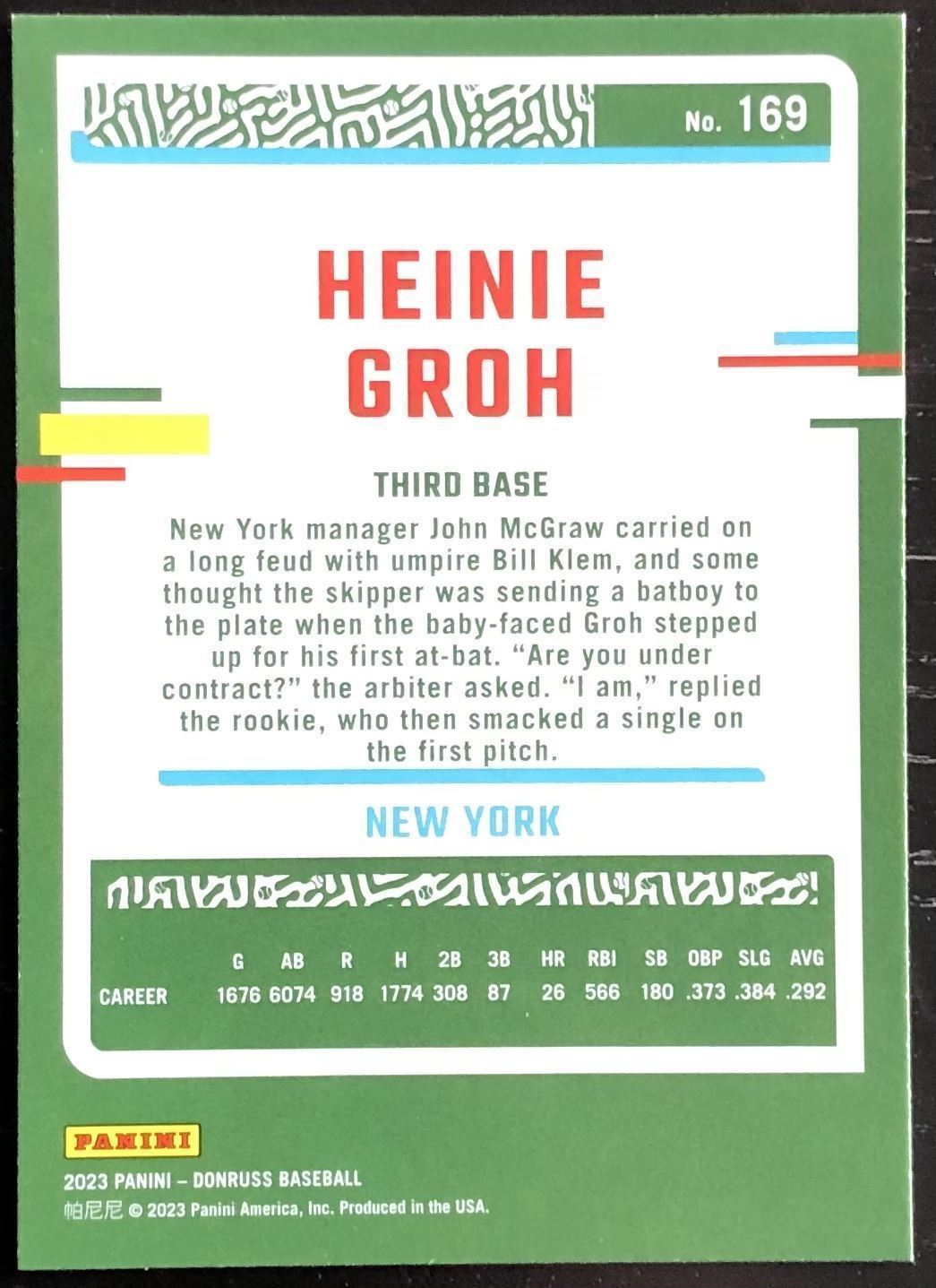 Lot 548 2023 DONRUSS HEINIE GROH (HOF)