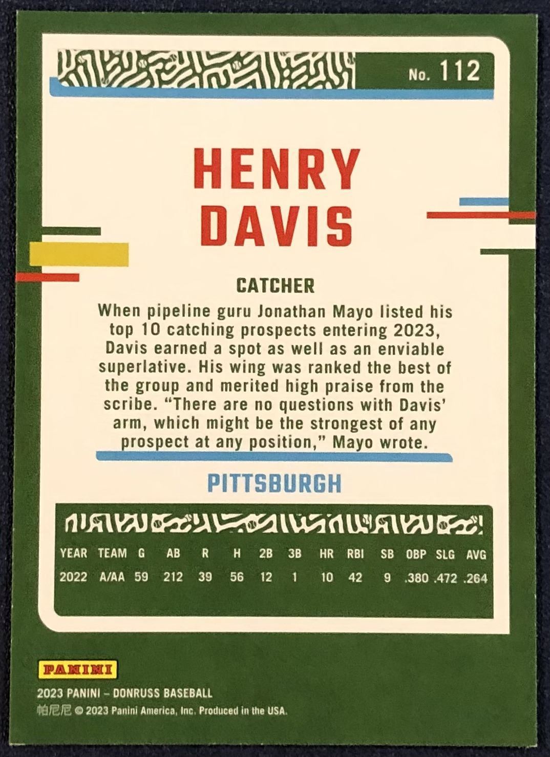 Lot 549 2023 DONRUSS HENRY DAVIS ROOKIE CARD