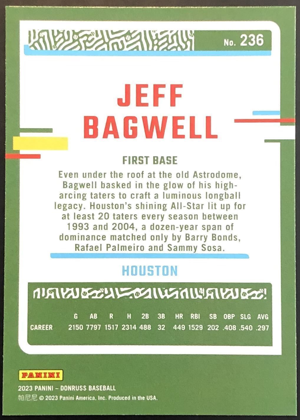 Lot 552 2023 DONRUSS JEFF BAGWELL (HOF)