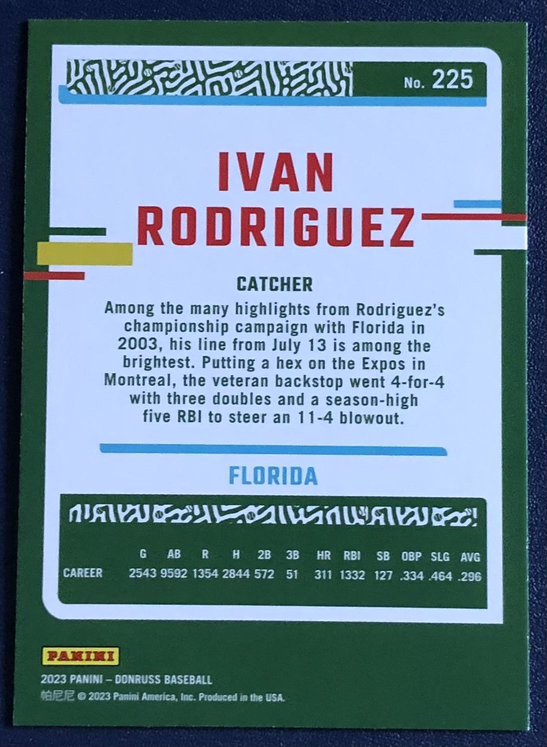 Lot 562 2023 DONRUSS PANINI IVAN RODRIGUEZ (HOF)