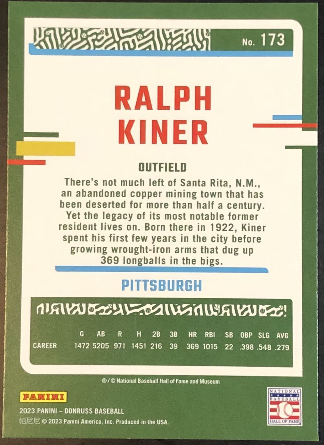 Lot 564 2023 DONRUSS RALPH KINER (HOF)