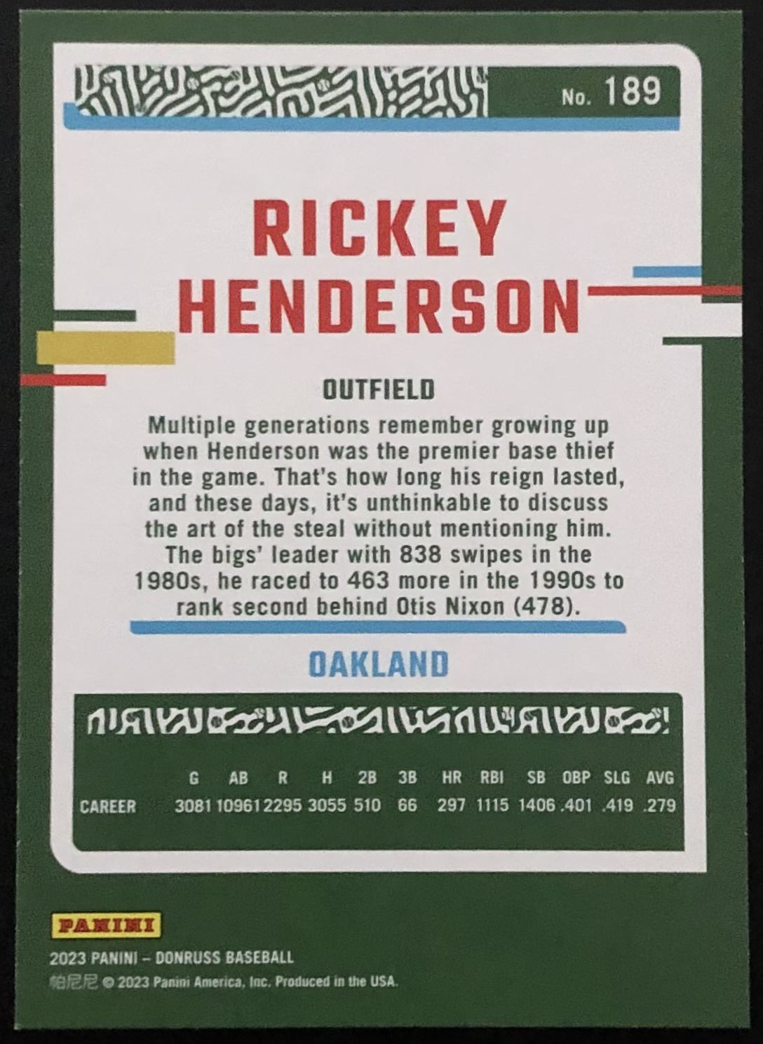 Lot 573 2023 DONRUSS RICKEY HENDERSON (HOF)
