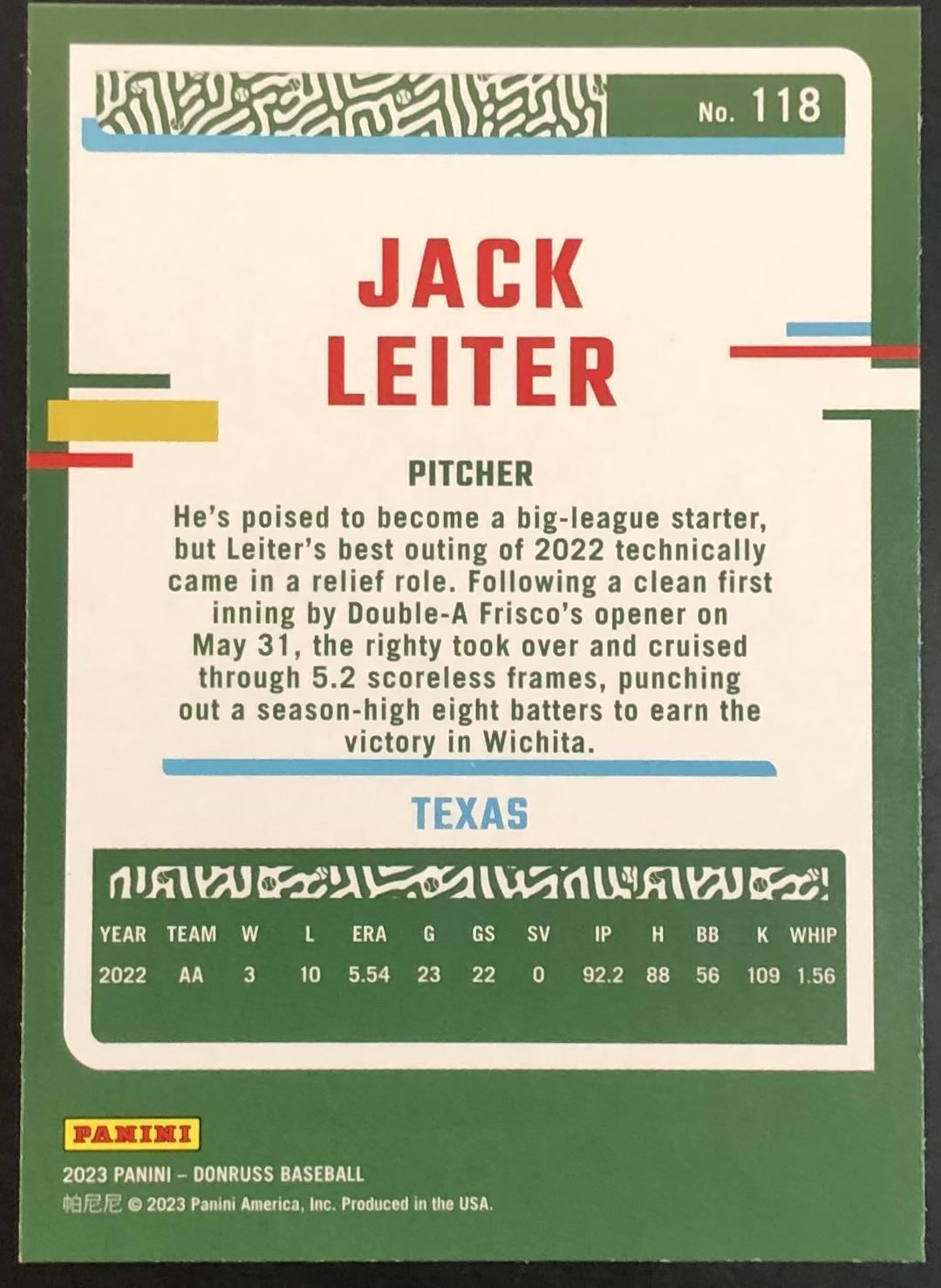 Lot 584 2023 DONRUSS YELLOW PARALLEL JACK LEITER ROOKIE CARD