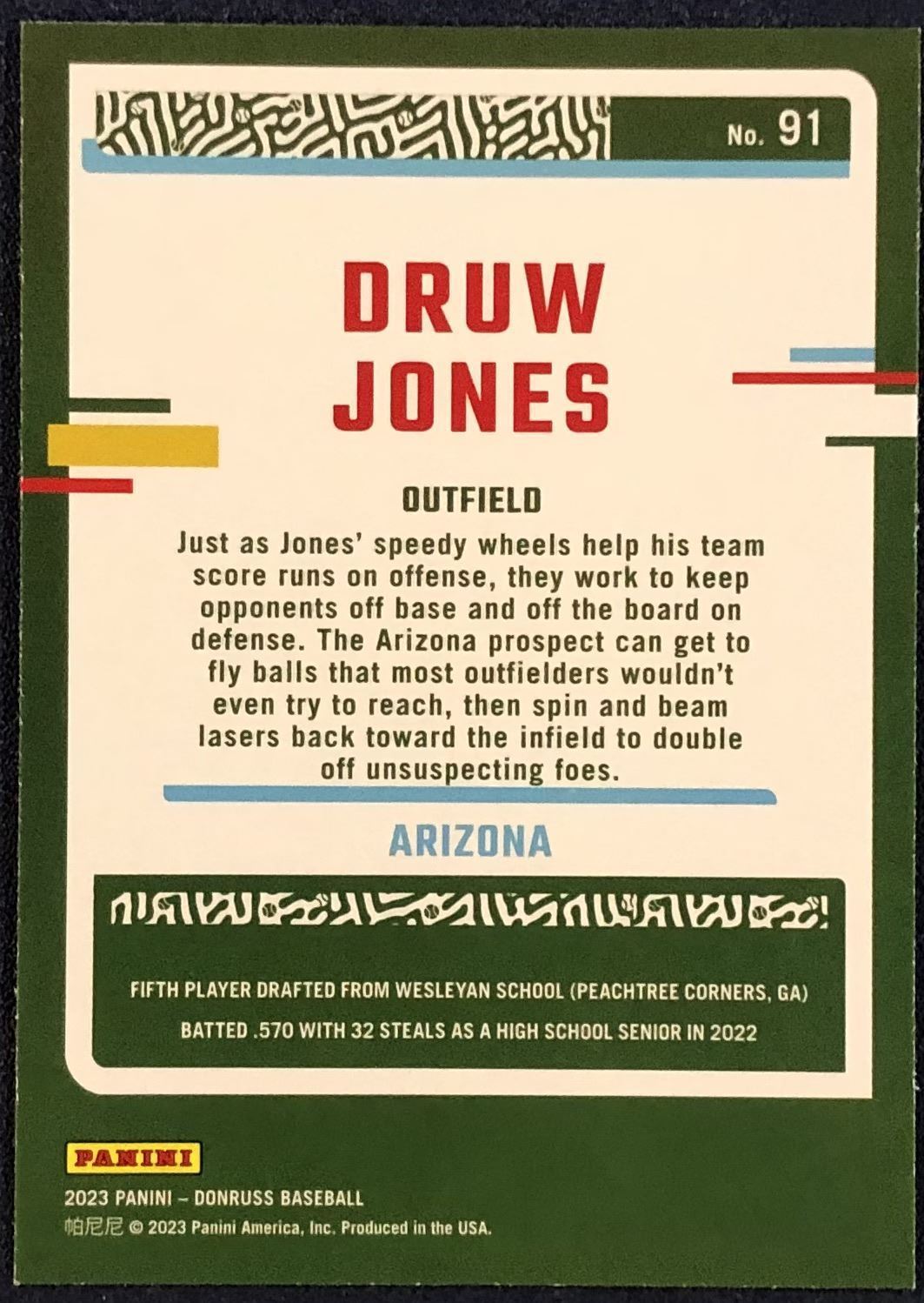 Lot 587 2023 DONRUSS YELLOW SPLASH DRUW JONES ROOKIE CARD