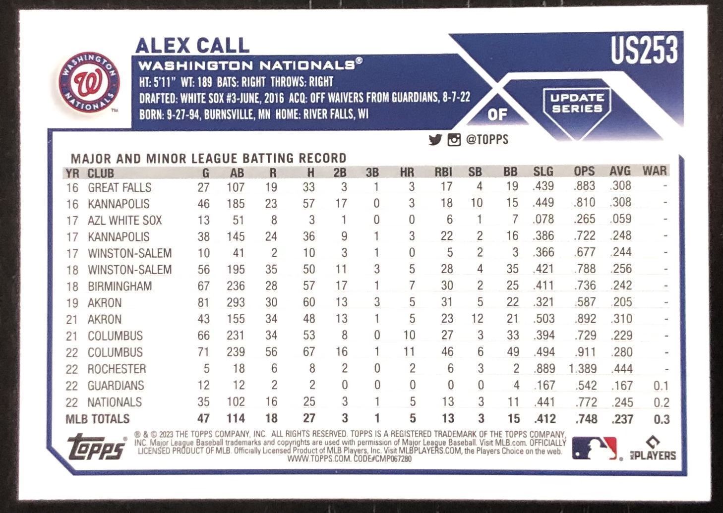 Lot 589 2023 TOPPS ALEX CALL ROOKIE CARD