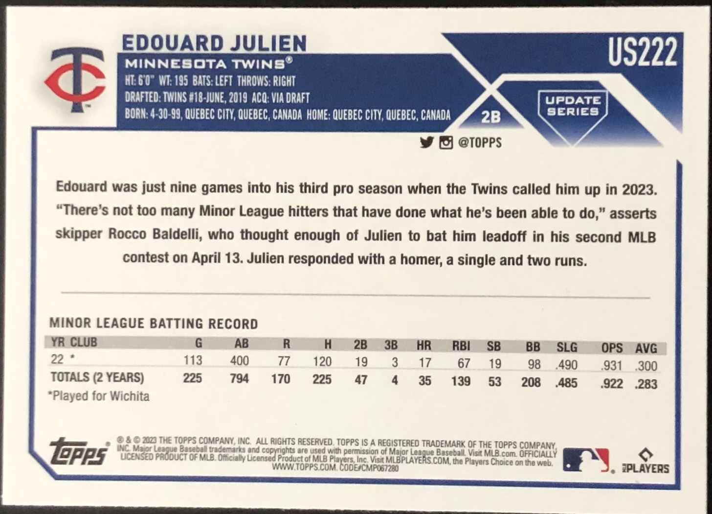 Lot 593 2023 TOPPS EDOUARD JULIEN ROOKIE CARD