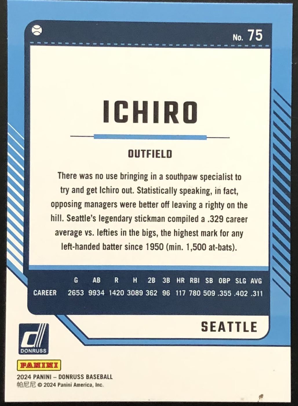 Lot 608 2024 DONRUSS ICHIRO SUZUKI (HOF)