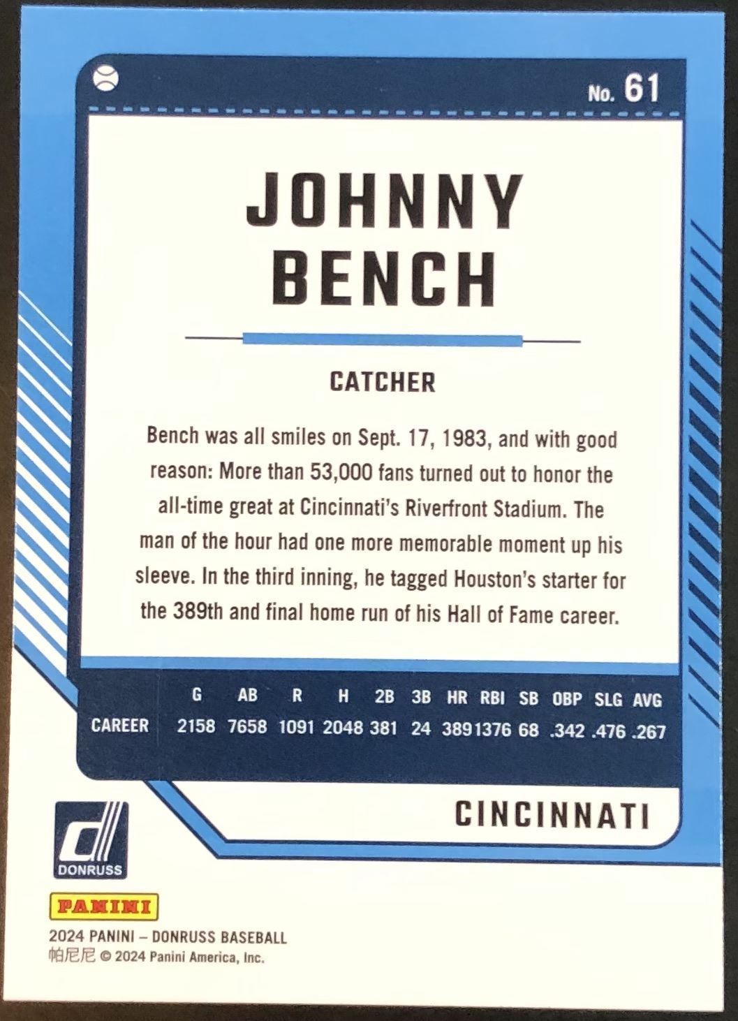 Lot 609 2024 DONRUSS JOHNNY BENCH (HOF)