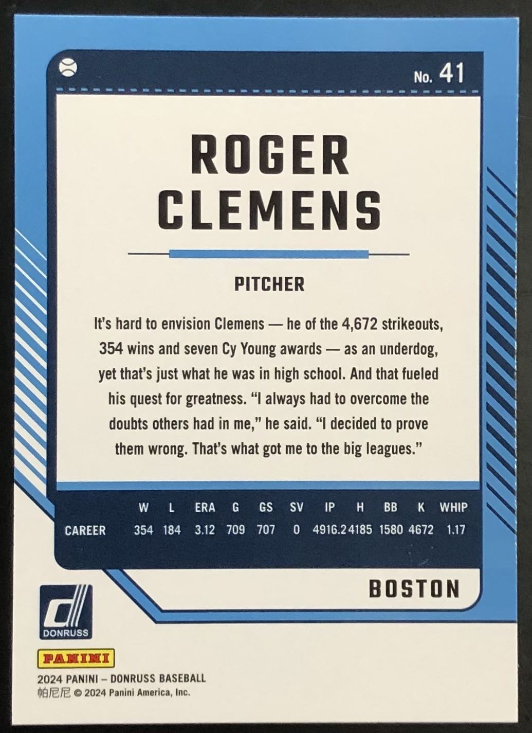 Lot 611 2024 DONRUSS ROGER CLEMENS