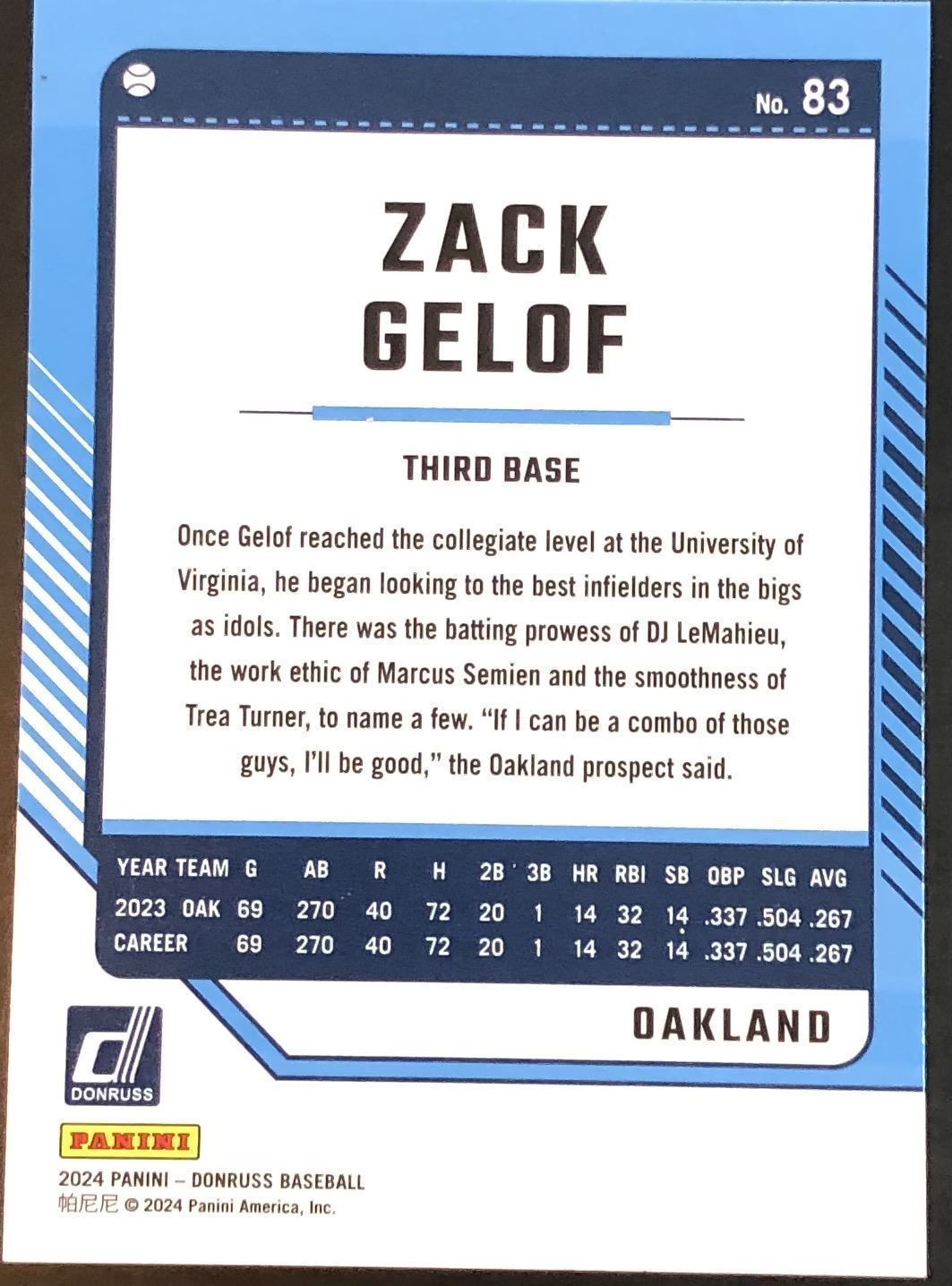 Lot 613 2024 DONRUSS ZACK GELOF ROOKIE CARD